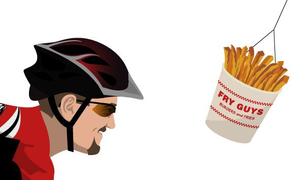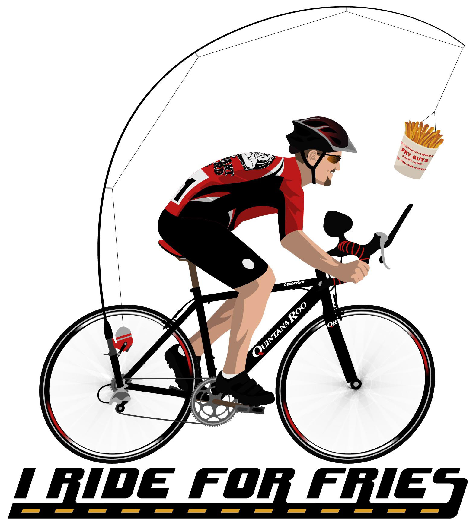 This is a portrait/logo that I created for Stephen Bach, a colleague of mine who likes to do bike races and triathlons. After every race, he rewards himself with french fries and wanted to incorporate that into the design.